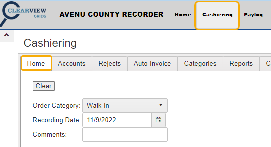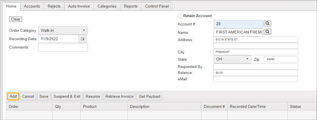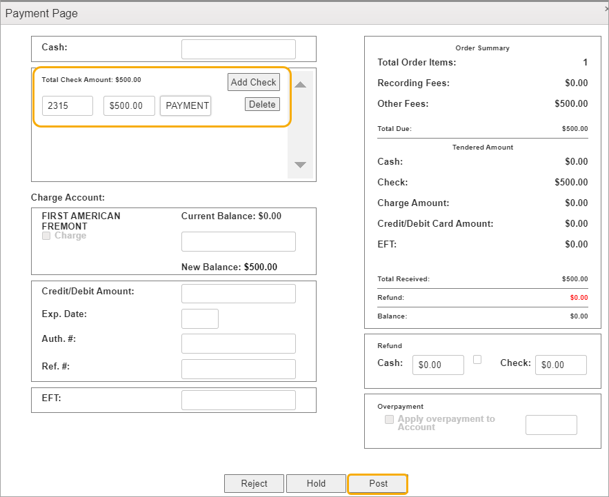 The Print Receipt and Options buttons are displayed for you to print a receipt or validations.
