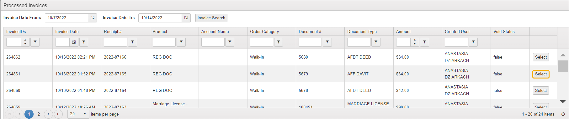 Locate desired item and click the Select button.