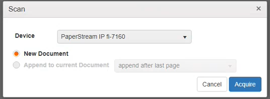 If the document has not been scanned yet, the dialog defaults to New Document.