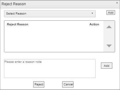 Clicking the Reject button brings up the Reject Reason dialog where you can enter reasons why the document cannot be processed. The item will be removed from the Cashiering grid.